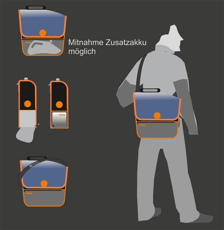 Entwicklung einer multifunktionalen Gepäcktaschencollection, wo auch ein Zusatzakku Platz findet!